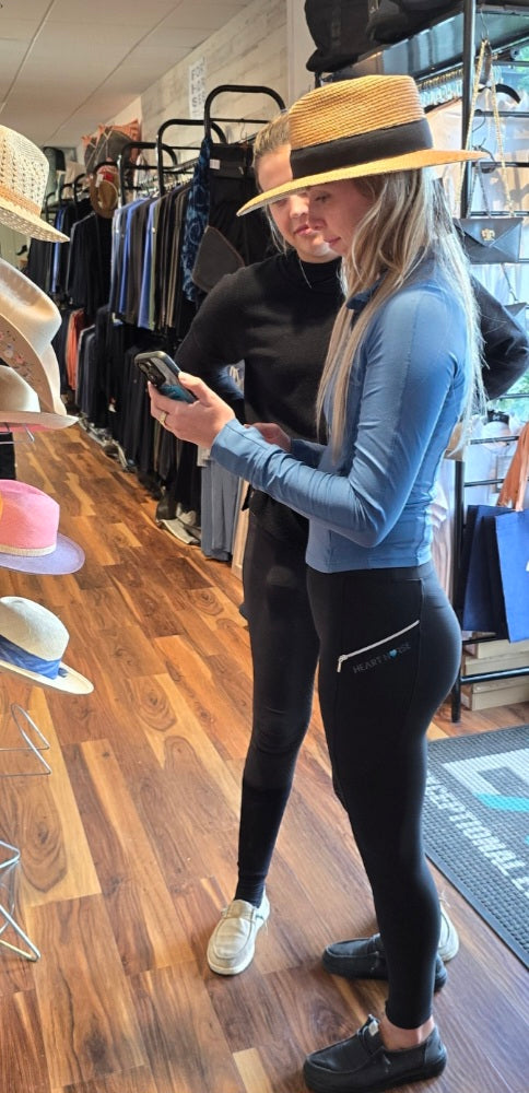 Sporty, lite jacket great for the morning chill or to layer with. Comfortable to ride in or just relax. Front zippered pockets, ventilated back, cuffed sleeves, and Heart Horse Logo on the back. Currently available in Steel Blue and Black.